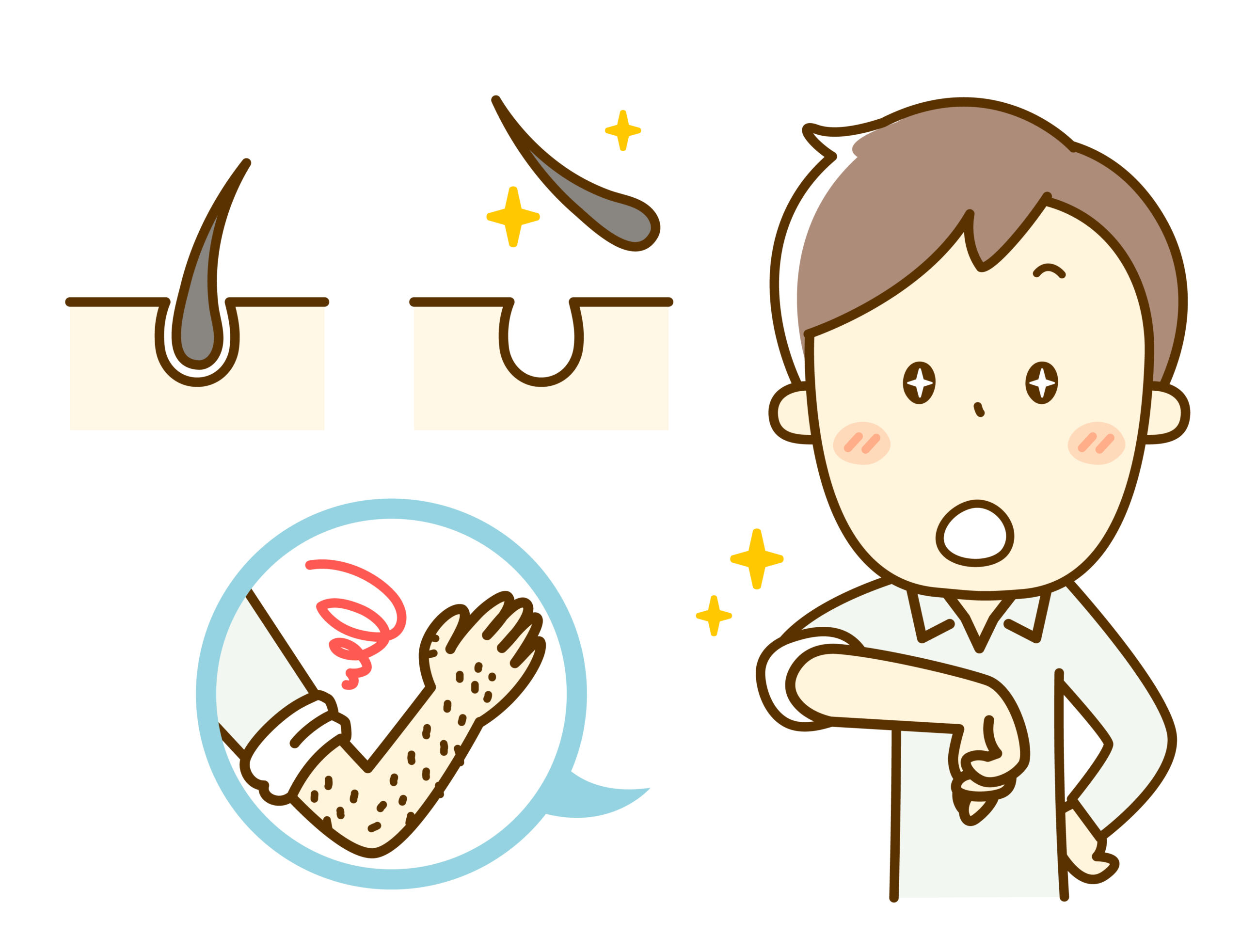SHR脱毛は、毛周期に左右されず施術でき、日焼けした肌や産毛にも効果を期待できます。